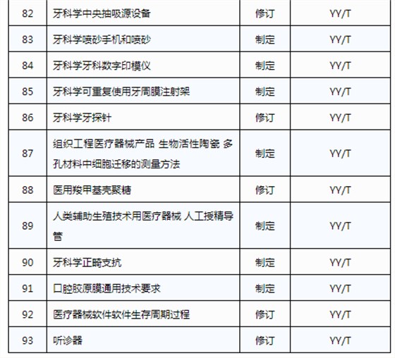 此前,國家藥品監督管理局組織開展了2019年醫療器械行業標準制修訂項目遴選工作。經公開征求意見和組織專家論證,此次《通知》確定了2019年93項醫療器械行業標準制修訂計劃項目,包括括聽診器、皮內針、醫用診斷X射線機通用技術條件等,具體項目如下: