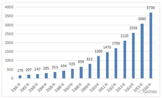 據(jù)中國醫(yī)藥物資協(xié)會(huì)醫(yī)療器械分會(huì)抽樣調(diào)查統(tǒng)計(jì),2016全年中國醫(yī)療器械市場銷售規(guī)模約為3700億元,比2015年度的3080億元增長了620億元,增長率約為20.13%。根據(jù)預(yù)測,未來十年將是中國醫(yī)療器械行業(yè)高速發(fā)展的黃金生長期。
