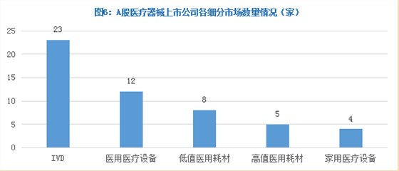 截止2018年12月31日,我國A股市場總計(jì)有52家醫(yī)療器械上市公司,IVD市場最多,共有23家上市公司,占比高達(dá)44.23%,其次是醫(yī)用醫(yī)療設(shè)備市場,有12家上市公司,占比23.08%。其中,2018年就有4家醫(yī)療器械公司新上市,分別是邁瑞醫(yī)療、振德醫(yī)療、明德生物和愛朋醫(yī)療。